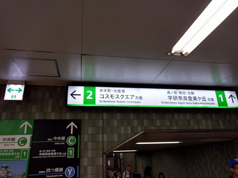 淀屋橋から本町へ、本町からコスモスクエアへ乗り継ぎました。